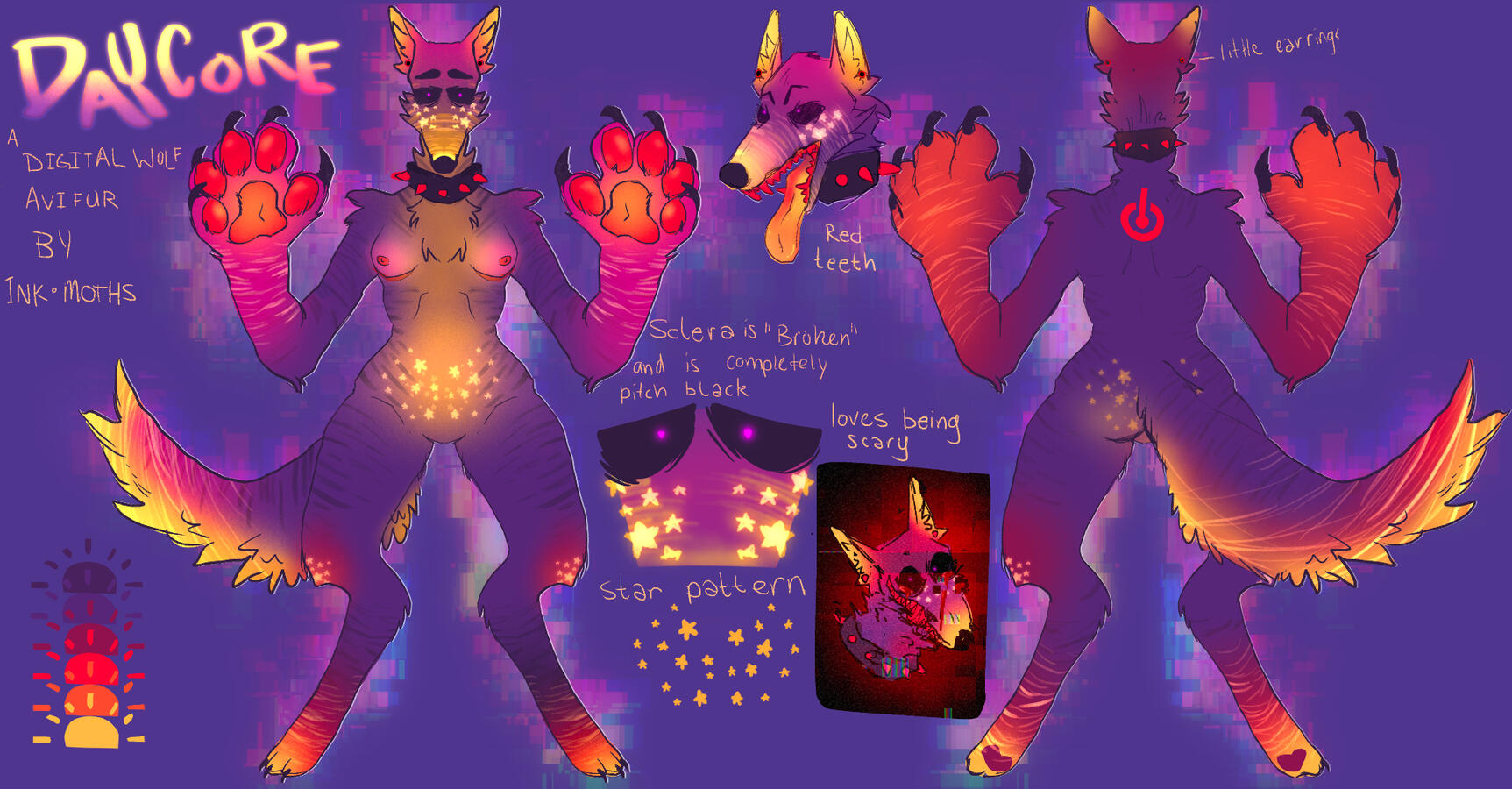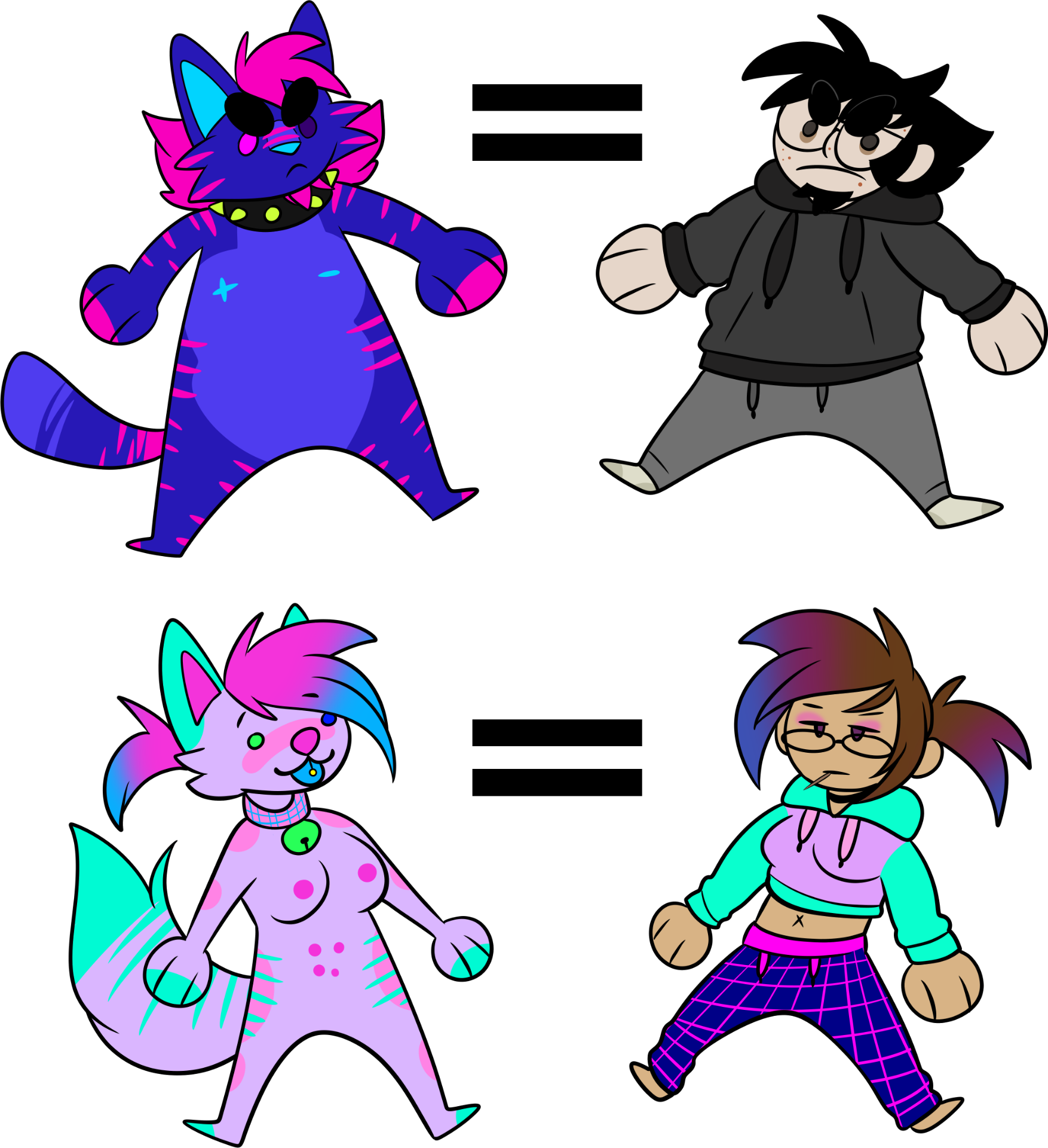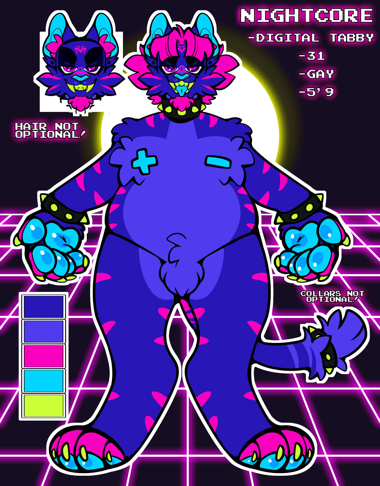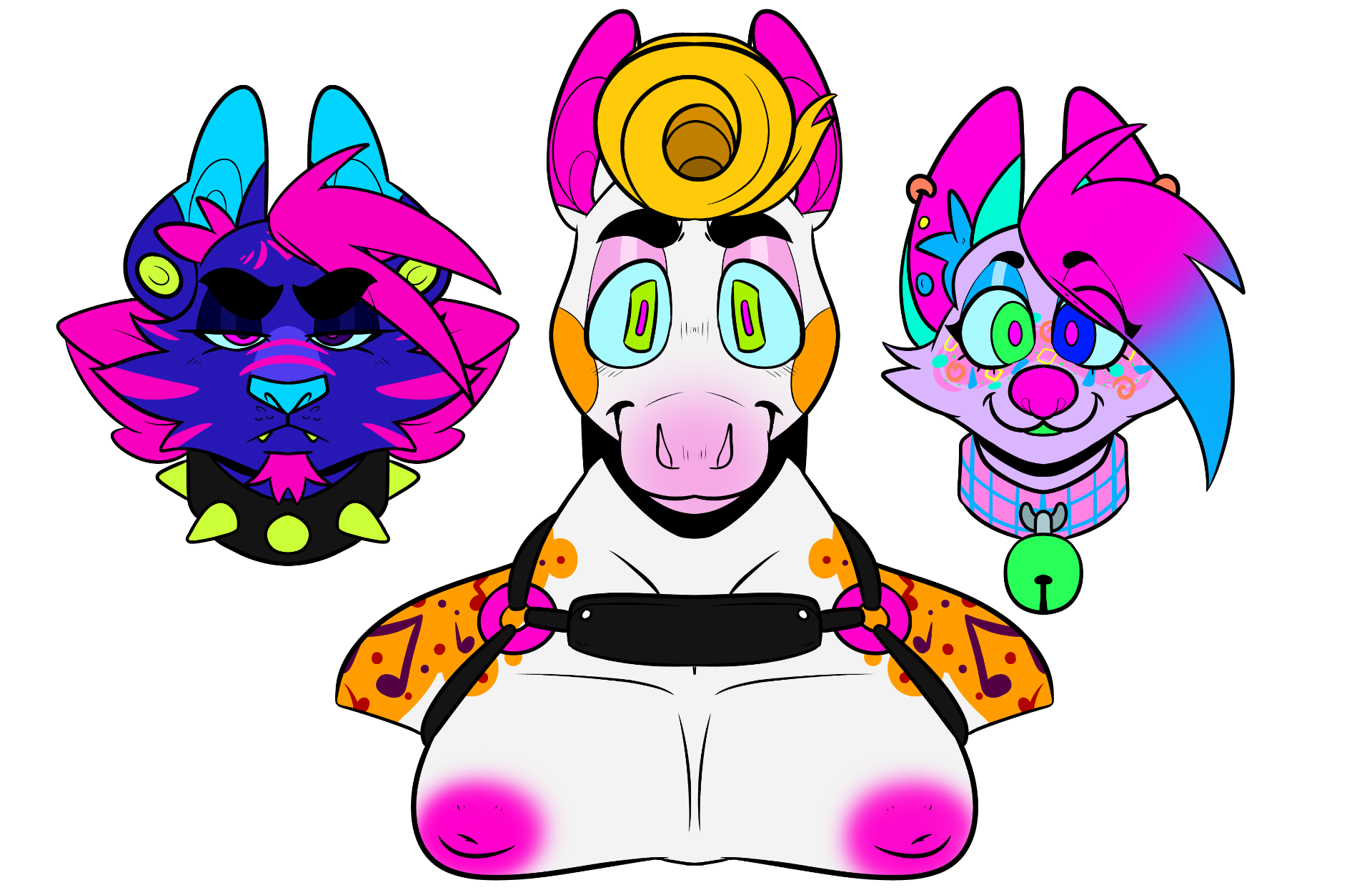The accessory MUST have some kind of glowing element! This can change in color or make little sounds to signify certain emotions! (I.E nightcores spikes, CARTOON's yoke rings and Vaporwave's bell!)All AVIFURS have purple/pink pupils! (Hex code is #ff00ff)